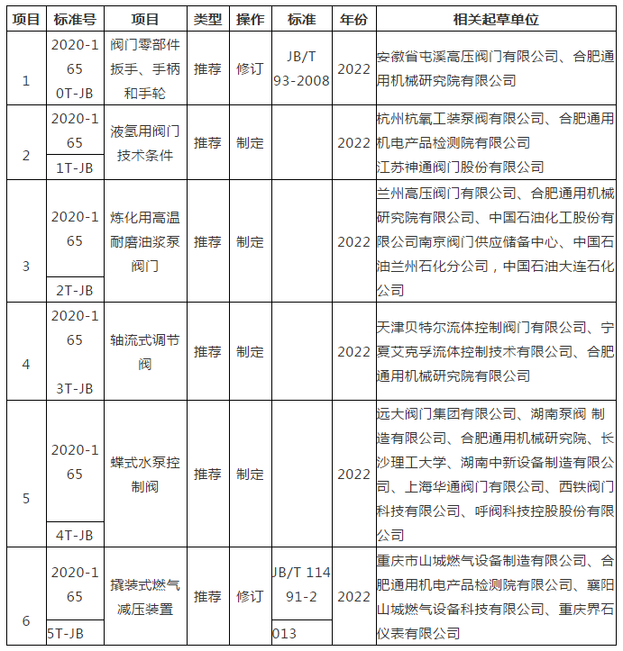 近日,工業和信息化部辦公廳以工信廳科函[2020]263號文印發關于2020年第三批行業標準制修訂計劃,其中由全國閥門標準化技術委員會歸口的標準項目6項,均為一般項目。