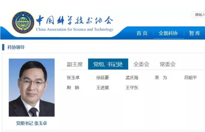 8月2日,中國科學技術協會網站“科協領導”欄目顯示,中石化董事長張玉卓接替懷進鵬,7月起任中國科協黨組書記。