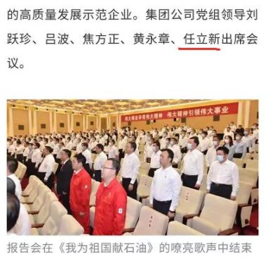 在《京城專場!中國石油長慶油田專題報(bào)告會(huì)》三天前的這個(gè)會(huì)議上,任總也已黨組成員身份出現(xiàn)了。