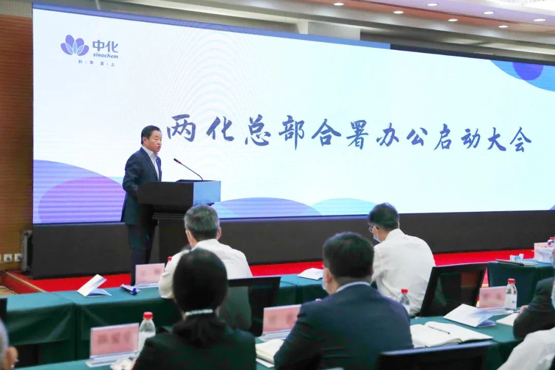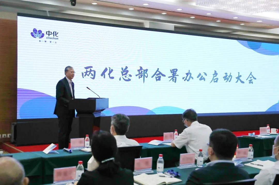 為統(tǒng)一思想、堅定信心、凝聚合力,為各項工作開好局、起好步,并為下一步重組整合打下基礎,6月8日上午,中國中化控股有限責任公司(簡稱中國中化)召開兩化總部合署辦公啟動大會。會上,中國中化黨組副書記李慶代表公司黨組宣布中國中化總部組建方案及人事安排。中國中化董事長、黨組書記寧高寧發(fā)表講話。中國中化總經(jīng)理、黨組副書記李凡榮主持會議。中國中化黨組班子成員,中國中化總部各部門全體干部職工,中國化工黨委委員,中化集團下屬各事業(yè)部和BU、中國化工下屬各專業(yè)公司班子成員等總計約700人,在北京凱晨世貿(mào)中心主會場和全國各地75個視頻分會場參加會議。
