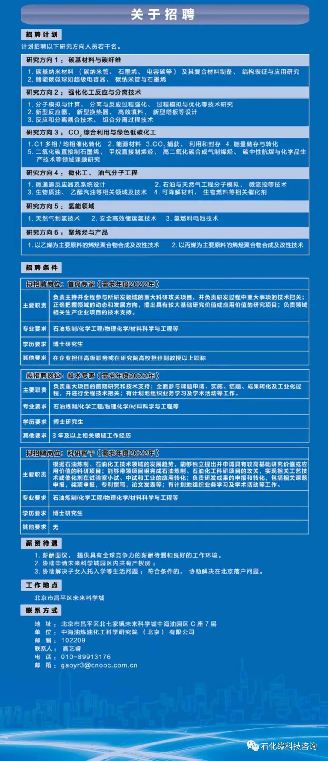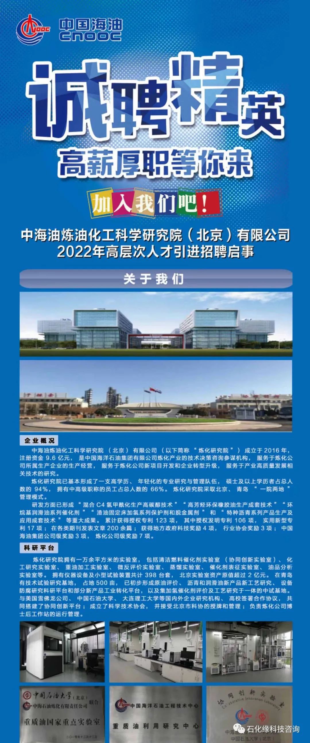 中海油煉化研究院2022年高層次人才招聘!