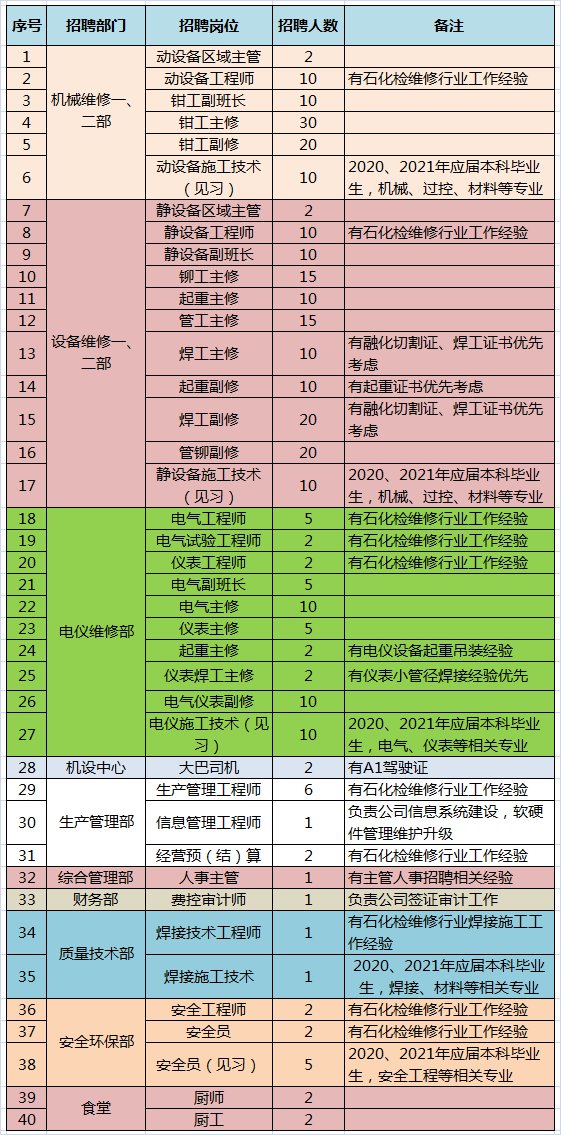 公司簡:浙江鼎盛石化工程有限公司是浙江石油化工有限公司和鎮海石化建安工程有限公司合資成立的檢維修子公司,公司成立于2018年8月,注冊資金6000萬元。公司經營范圍為石化裝置及其它工業設備安裝、維修等業務。下設綜合管理部、財務部、生產管理部、安全環保部、質量技術部5個職能部門及機械維修一部、機械維修二部、設備維修一部、設備維修二部、電儀維修部、綜合維修部、閥門維修部、機械設備中心8個基層單位。當前主要工作是服務于浙江石化的全廠維保、檢修,遠期將以浙石化為基礎,向舟山綠色石化基地中下游企業提供技術服務。