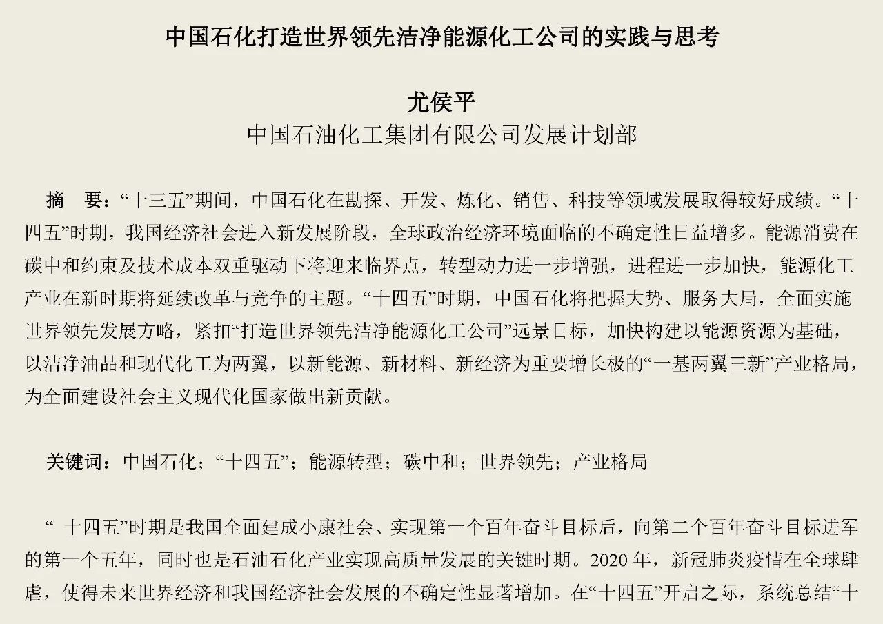 中國石化“十三五”發(fā)展回顧以及“十四五”發(fā)展機遇與挑戰(zhàn)!