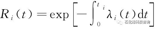 設備可靠度用可靠函數表示,指設備可以安全、穩定運行到特定時間t的概率,用R(t)表示,見式(1)。