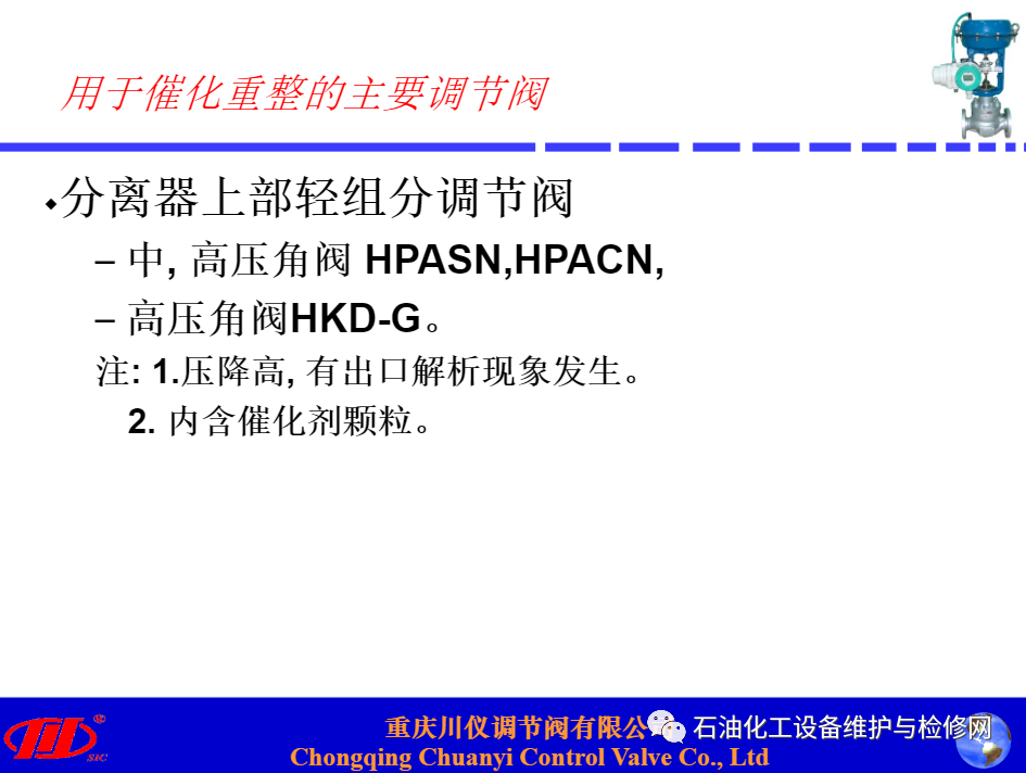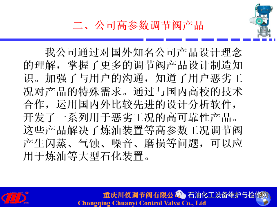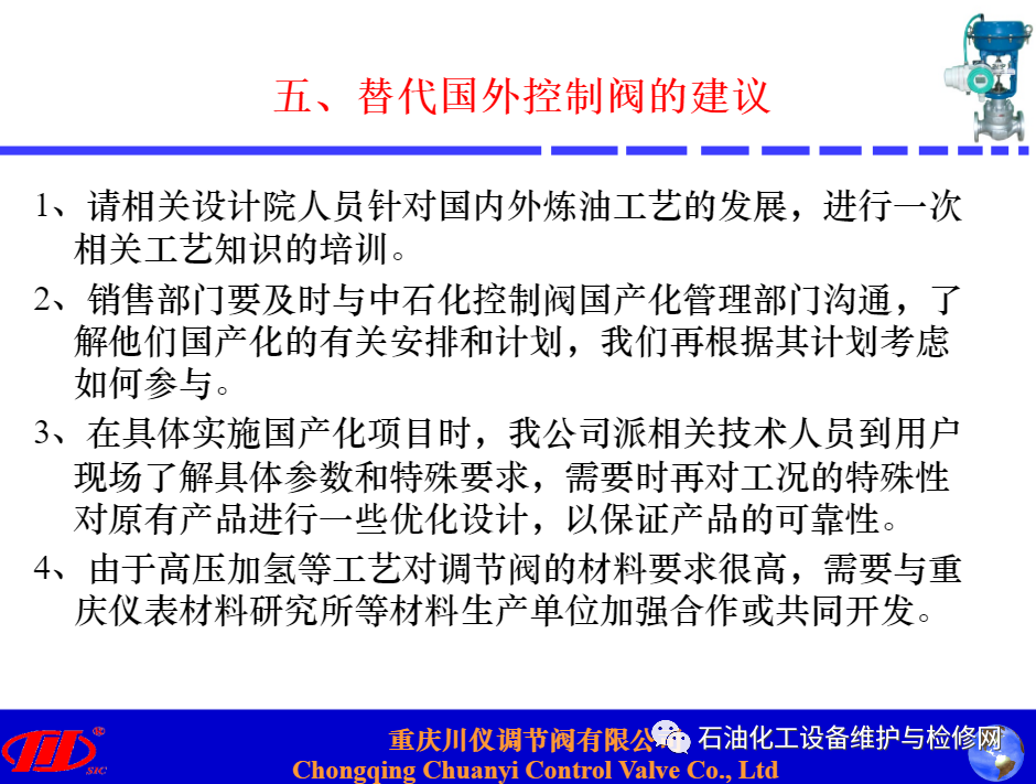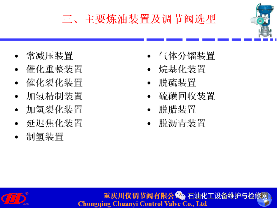 川儀調(diào)節(jié)閥在煉油項目中替代進(jìn)口閥的應(yīng)用分析講解.ppt