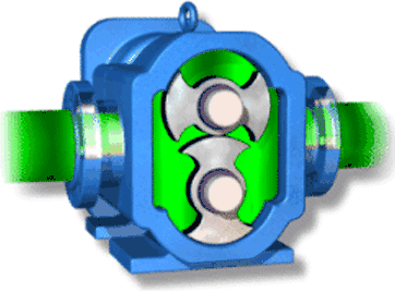 雙螺桿泵與齒輪泵十分相似,一個螺桿轉動,帶動另一個螺桿,液體被攔截在嚙合室內,沿桿軸方向推進,然后被擠向中央排出。