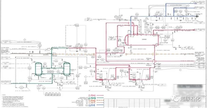 ⑶在PID上劃分腐蝕回路。劃分原則是將失效機理相同(一般是材料、溫度、介質相同)且彼此相連的設備、管線劃定為一個腐蝕回路,工藝工程師確認流體Ph、污染物、溫度和壓力,設備工程師、防腐蝕工程師與設備專家共同審查腐蝕機制。(參考下圖)
