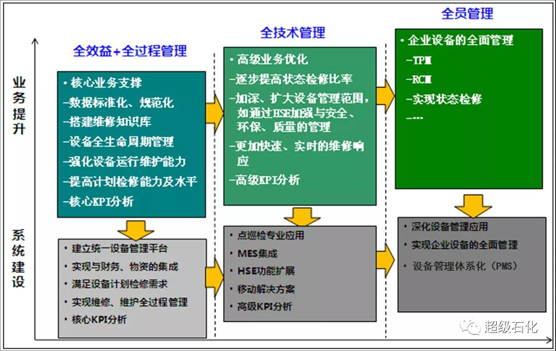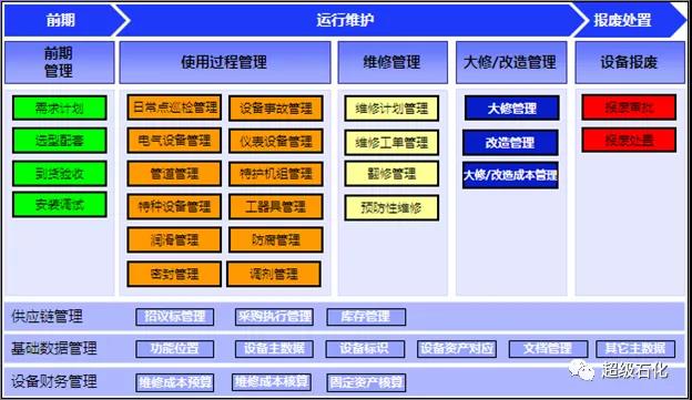 以PM系統作為設備全生命周期管理的平臺,邀請世界知名的咨詢公司針對工業園的特點,規劃實施設備管理信息化藍圖及設備生命周期管理功能結構(如上圖)。