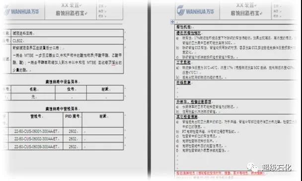 5)腐蝕回路管理。腐蝕管理是萬華設備管理中的重要一環,設備管理部在應用RBI的基礎上,提出腐蝕回路管理方案。結合裝置特點,將腐蝕回路的概念系統化,形成腐蝕回路檔案,應用到腐蝕機理分析、工藝物料參數控制、預防性維護、腐蝕數據積累、材質選型分析、腐蝕管理信息化構架等方面。通過腐蝕回路這條大動脈,達到腐蝕管理的全周期、全專業(工藝、設備、分析)和可持續性目標,徹底解決原有管理方式的弊端。
