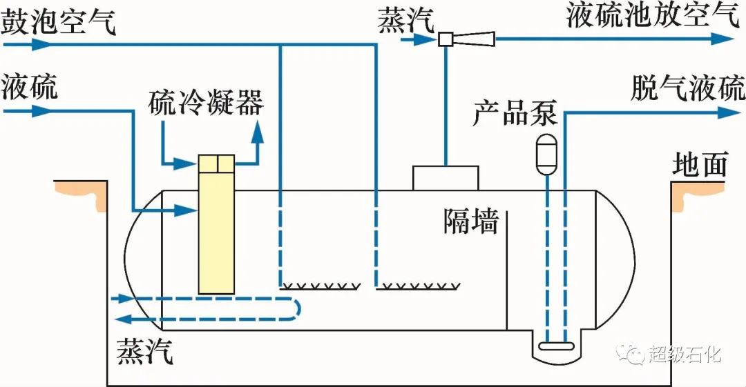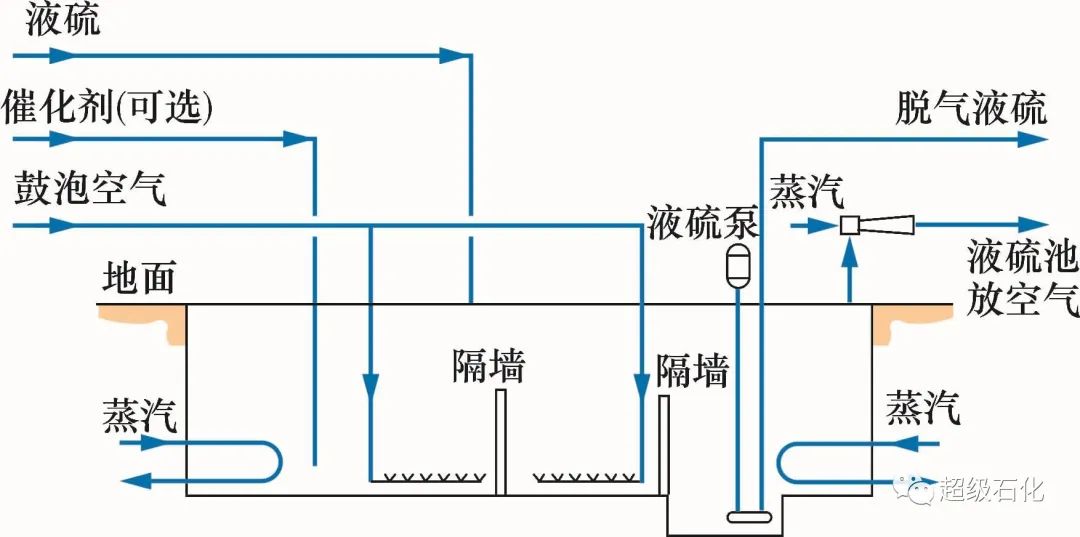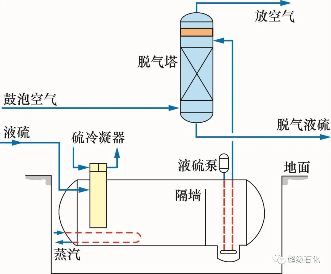 液硫池脫氣是目前最常用的硫磺回收裝置脫氣方案,工藝流程如圖1所示。