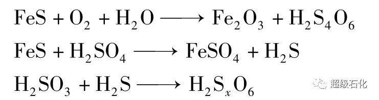 液硫池(罐)中,會產生腐蝕產物FeS,而腐蝕環境中也往往存在水、空氣、H2S,SO2及SO3等,因此極易形成連多硫酸腐蝕環境,反應式如下[8]: