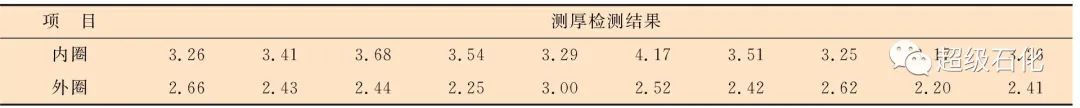 表2 罐頂超聲波測(cè)厚檢測(cè)匯總結(jié)果 mm