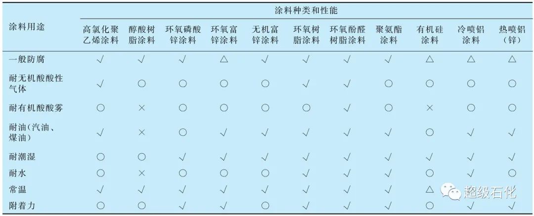 注:表中“√”表示性能較好,宜選用;“○”表示性能一般,可選用;“×”表示性能較差,不宜選用;“△”表示由于價(jià)格或施工等原因,不宜選用。