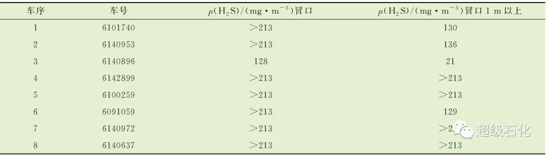 表4 原油槽車打蓋時(shí)的硫化氫質(zhì)量濃度