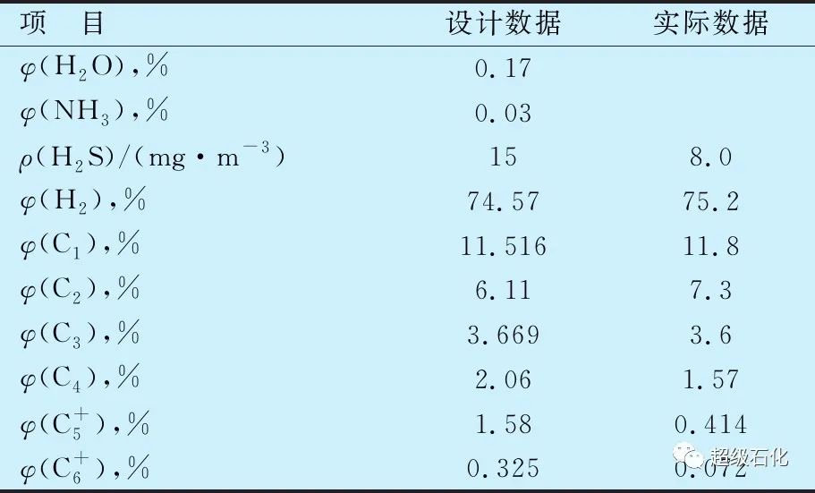 PSA裝置設(shè)計(jì)的原料氣及實(shí)際運(yùn)行過程中原料氣組成見表1。