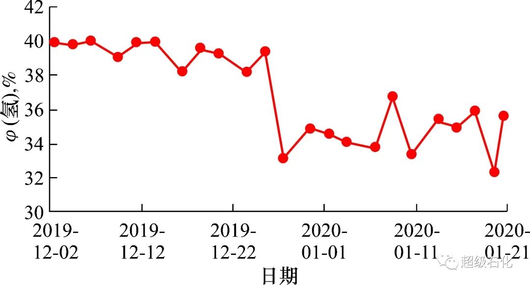 PSA裝置尾氣氫含量趨勢如圖2所示。
